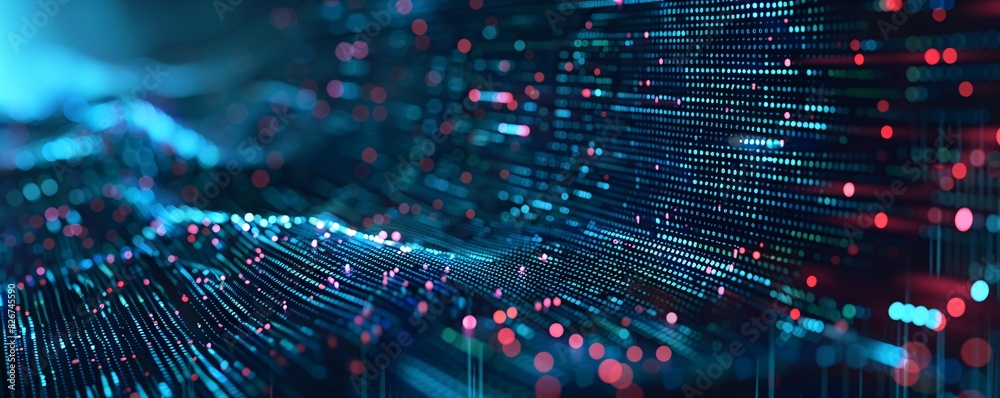 Wall mural abstract visualization of digital data streams with blue and red particles