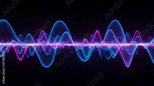 The watermark will not be included on Wall mural.: Abstract visualization of digital sound waves and frequencies in blue and violet