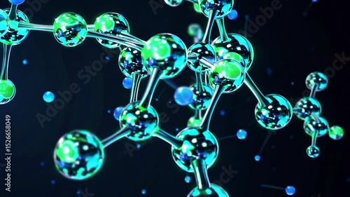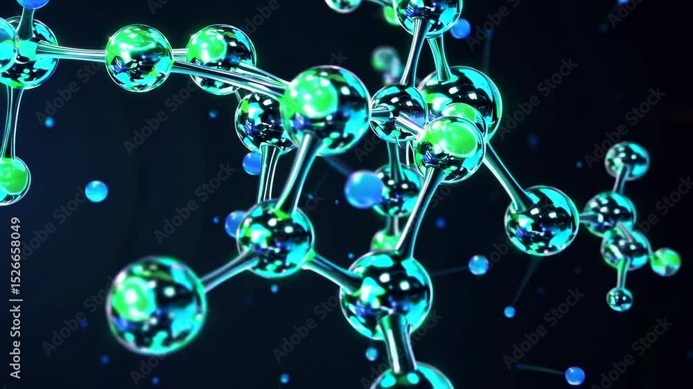 The watermark will not be included on Wall mural.: Abstract visualization of glowing molecular structures, atoms bonding dynamically to form complex ch