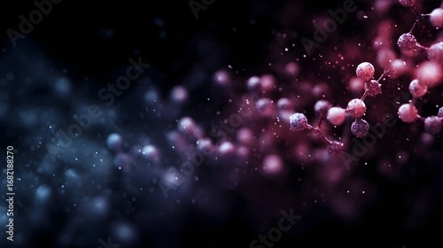 The watermark will not be included on Wall mural.: Abstract visualization of glowing molecular structures and particles in a dark colorful background