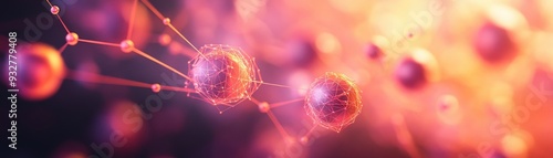 Wall mural abstract visualization of molecular structures with glowing connections in a vibrant gradient backgr - Wall murals Wall mural abstract visualization of molecular structures with glowing connections in a vibrant gradient backgr - Wall murals