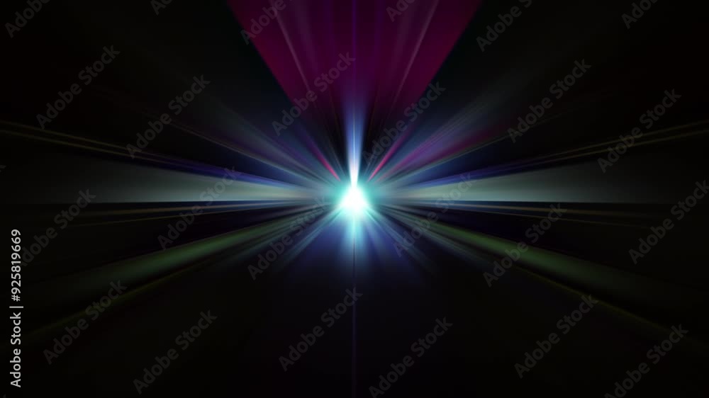 The watermark will not be included on Wall mural.: Abstract vjloop center colorful shine light sparking with beam radial shine ray light on black backg