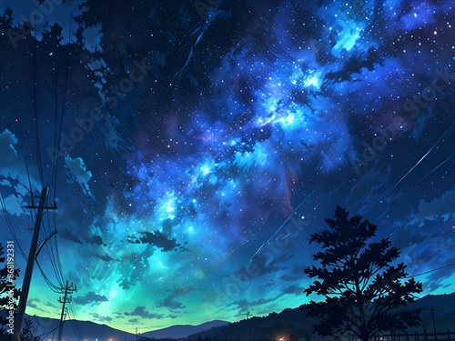 The watermark will not be included on Wall mural.: Abstract watercolor painting starry night with blue milky way