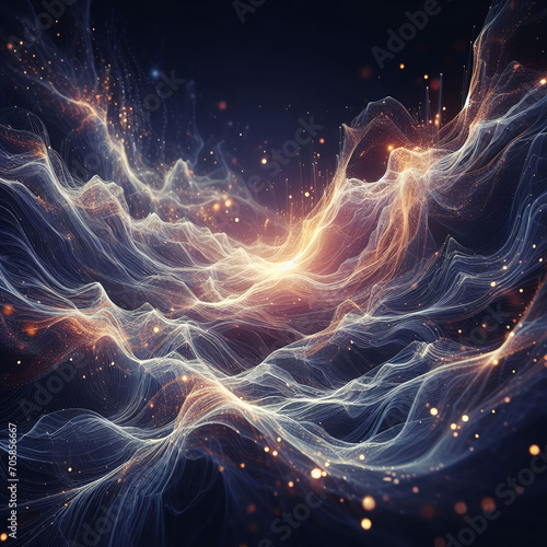 The watermark will not be included on Wall mural.: Abstract wave energy background abstract fractal light silk elegant field with particles and turbule