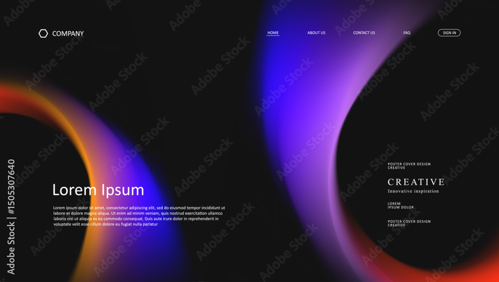 The watermark will not be included on Wall mural.: Abstract wave futuristic design of landing page - retro gradient mesh dark concept website design