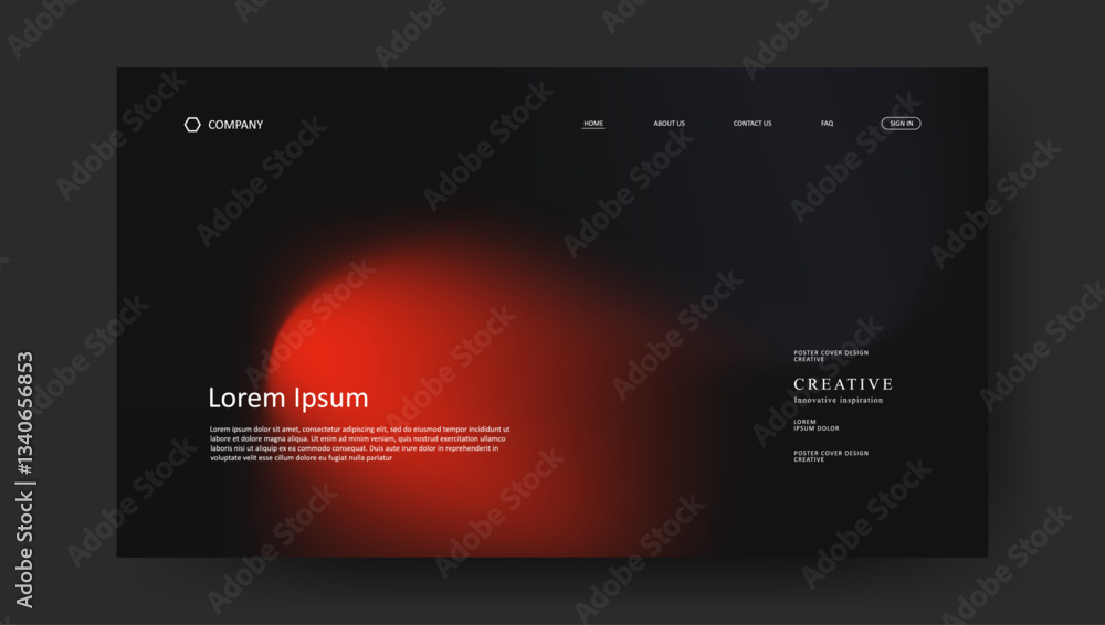 The watermark will not be included on Wall mural.: Abstract wave futuristic design of landing page - retro gradient mesh dark concept website design