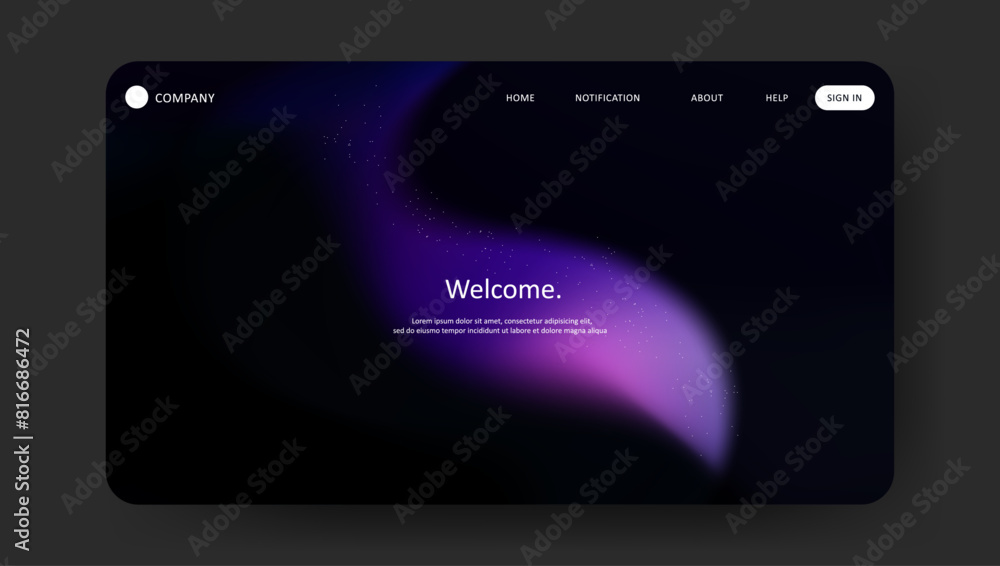 Wall mural abstract wave futuristic design of landing page. retro gradient mesh dark concept website design