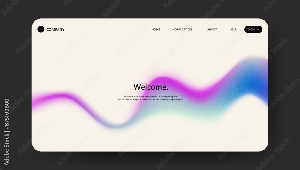 The watermark will not be included on Wall mural.: Abstract wave futuristic design of landing page - retro gradient mesh website design