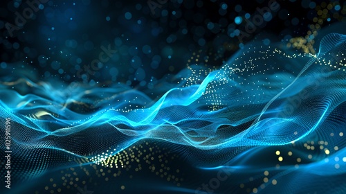 Wall mural abstract wave of blue lights with sparkling particles. technological background. digital artwork. ai