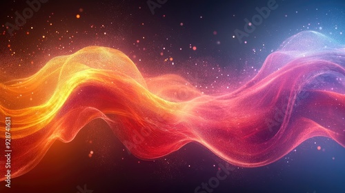 The watermark will not be included on Wall mural.: Abstract wave of glowing red and yellow particles with sparkles