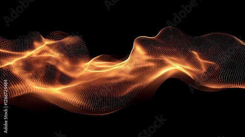 The watermark will not be included on Wall mural.: Abstract wave of golden light flowing against a black background, creating a dynamic visual effect