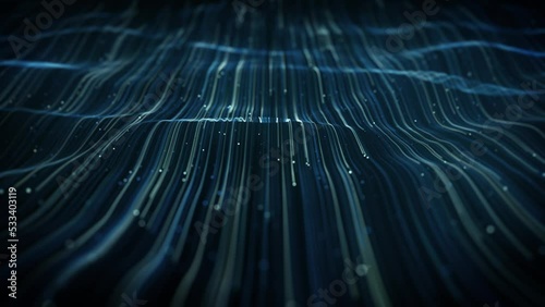 Wall mural abstract wave of light strings flowing background/ 4k animation of an abstract wallpaper technology