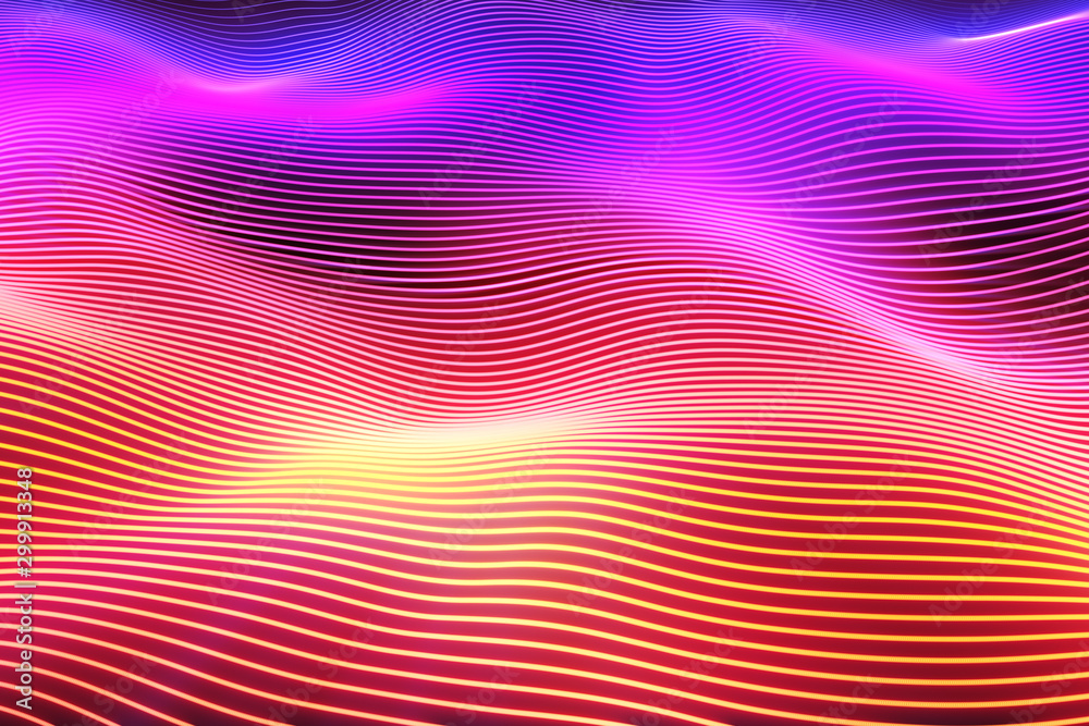 The watermark will not be included on Wall mural.: Abstract wave surface - big data of particles - futuristic neon glowing surface - abstract motion backg