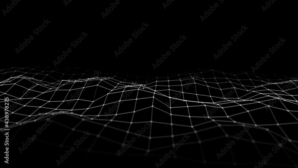 The watermark will not be included on Wall mural.: Abstract wave with moving dots and lines - flow of particles - cyber technology illustration -