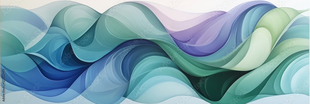 The watermark will not be included on Wall mural.: Abstract waves in soft pastel tones: fluid motion and serenity in colorful flowing forms -