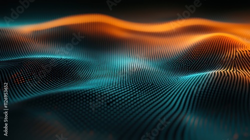 Wall mural : Abstract waves of light and color creating a digital landscape -