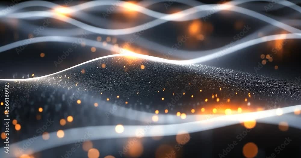 The watermark will not be included on Wall mural.: Abstract waves with blurred bokeh in gold and white with a dark background - the focus is on the deta