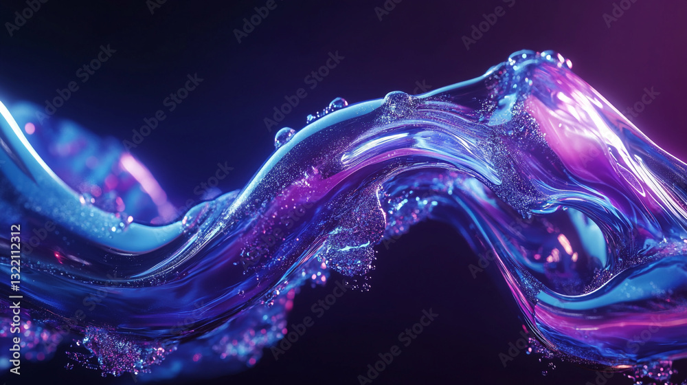 Wall mural : Abstract wavy glowing neon blue and pink color with sparkles on a dark blue background - this abstrac
