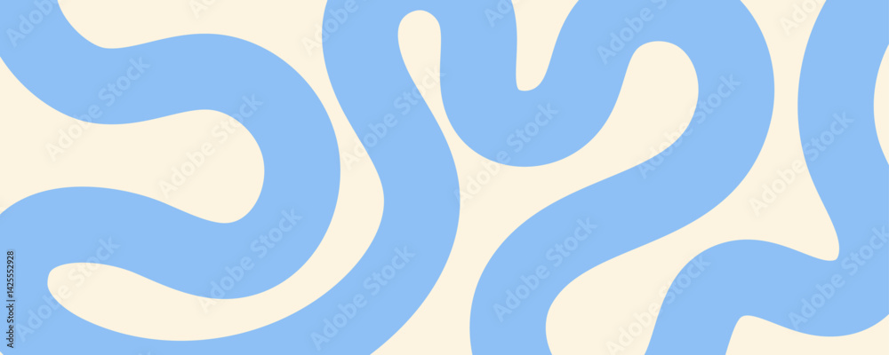 Wall mural : Abstract wavy lines pattern - horizontal background with dynamic curvy stripe, hand drawing wave line