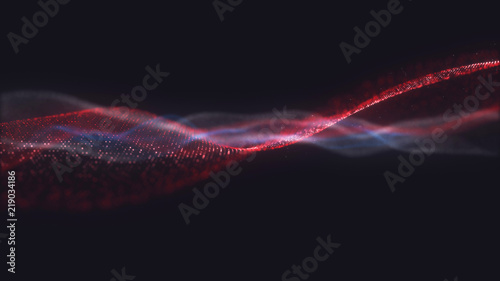 Wall mural abstract wavy structure with millions of glowing particles. colorful blurred magic background with l