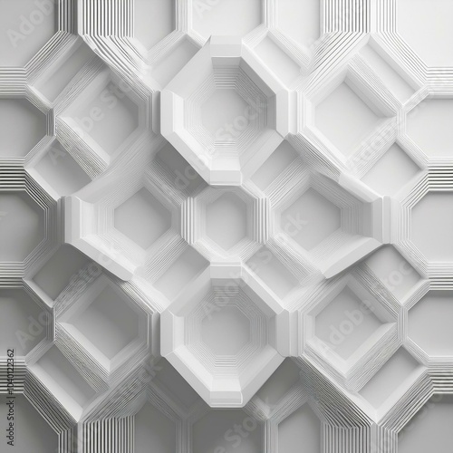 Wall mural : Abstract white background with hexagon pattern 3d rendering illustration white abstract wallpaper wi