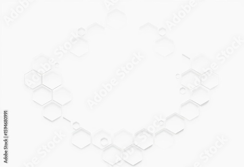 Wall mural abstract white background with minimal hexagonal pattern forming a modern vector banner, art, connec