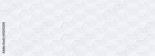 Abstract white geometric hexagon with white 3d grid - neumorphism elegant science background - random Wall mural