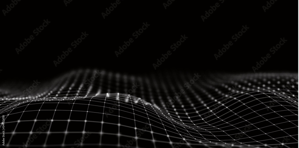 Wall mural : Abstract white particle background - flow wave with dot landscape - digital data structure - future mes