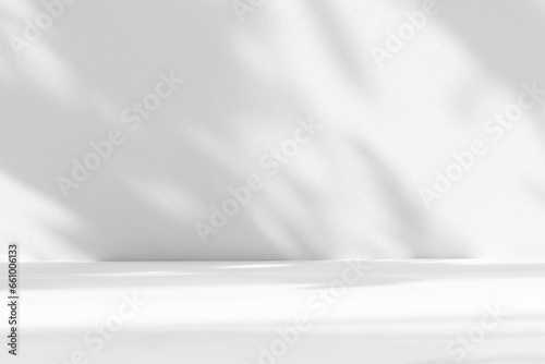 Abstract white studio background for product presentation - empty room with shadows of window and floWall mural