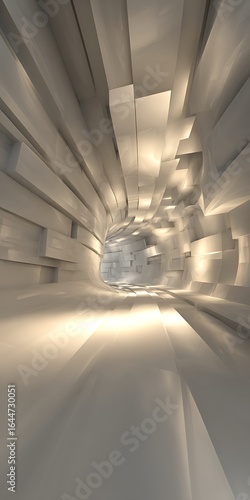 The watermark will not be included on Wall mural.: Abstract white tunnel with geometric shapes and perspective, creating a modern and futuristic archit
