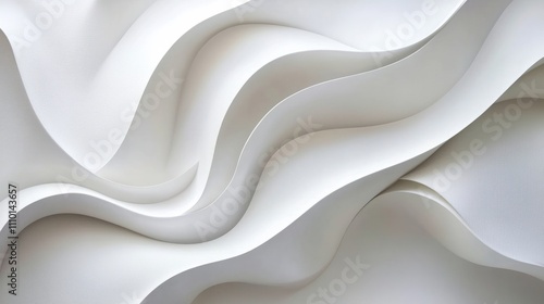 Wall mural : Abstract white waves softly overlapping, creating depth on a clean white background