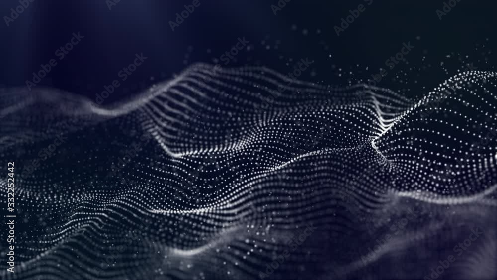Wall mural : Abstract white waving particles loop background - clean glitter floating dust animation - digital scie