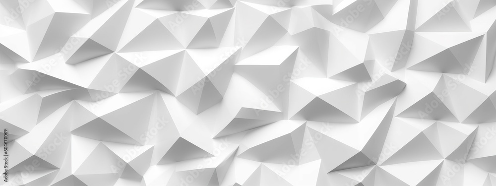 Wall mural abstract wide white texture with geometric triangular 3d triangles pattern wall background banner il