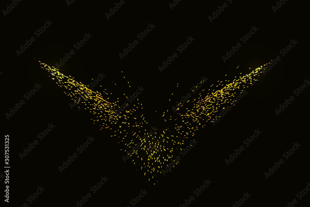 Wall mural abstract wing pattern is composed of colorful dynamic particles