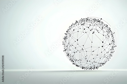 Wall mural abstract wireframe sphere connects dots and lines, forming intricate network on clean background
