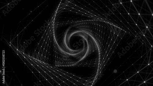 Wall mural : Abstract wireframe tunnel - wormhole - 3d portal grid - futuristic fantasy funnel - 3d rendering -