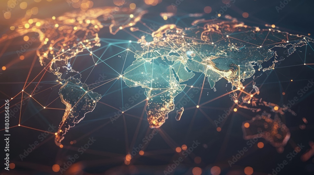 Wall mural : Abstract world map with global network and connectivity, international data transfer and cyber techn