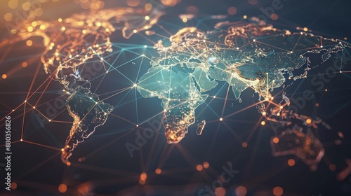 Wall mural abstract world map with global network and connectivity, international data transfer and cyber techn