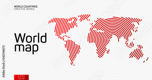 The watermark will not be included on Wall mural.: Abstract world map with red circle lines