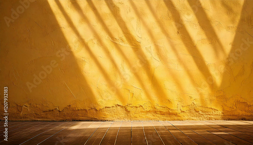 The watermark will not be included on Wall mural.: Abstract yellow color gradient studio background for product presentation - empty room wall and floor