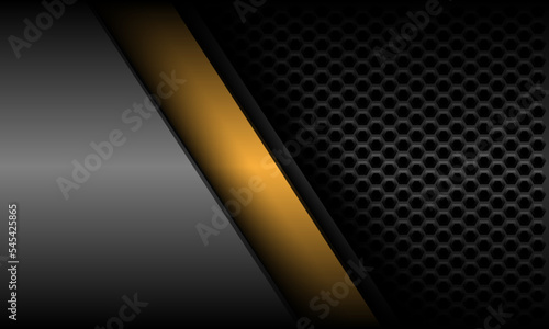 Wall mural abstract yellow line slash geometric with grey metallic hexagon mesh design modern futuristic backgr