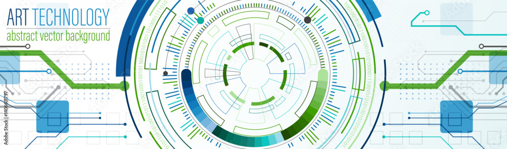 Wall mural abstraction on the theme of tech circles. scientific and technological background. the layout of the