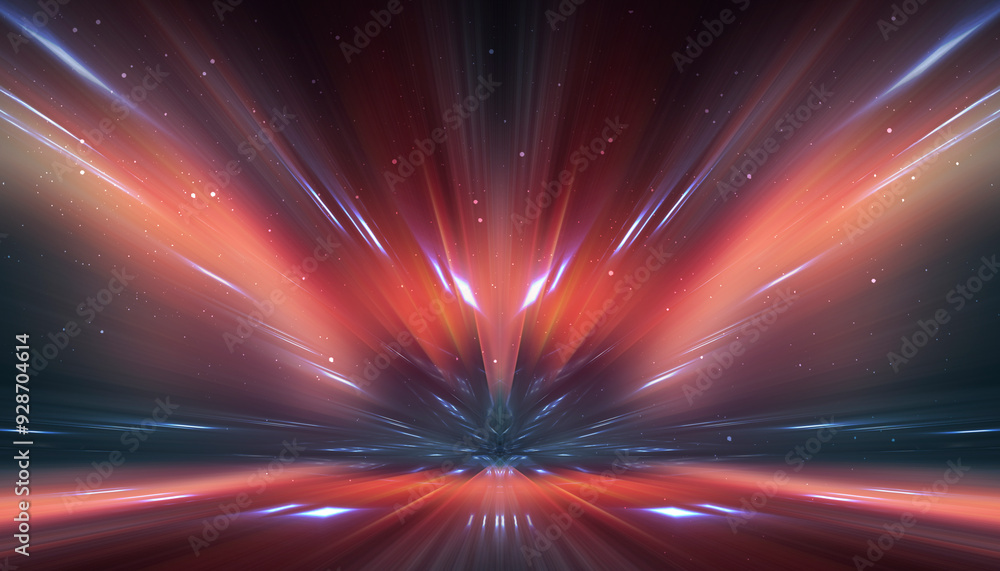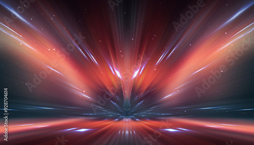 Wall mural abstraction with rays and neon. futuristic empty stage.