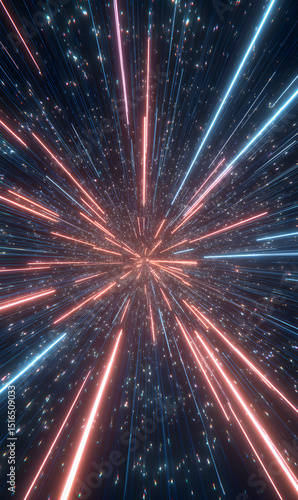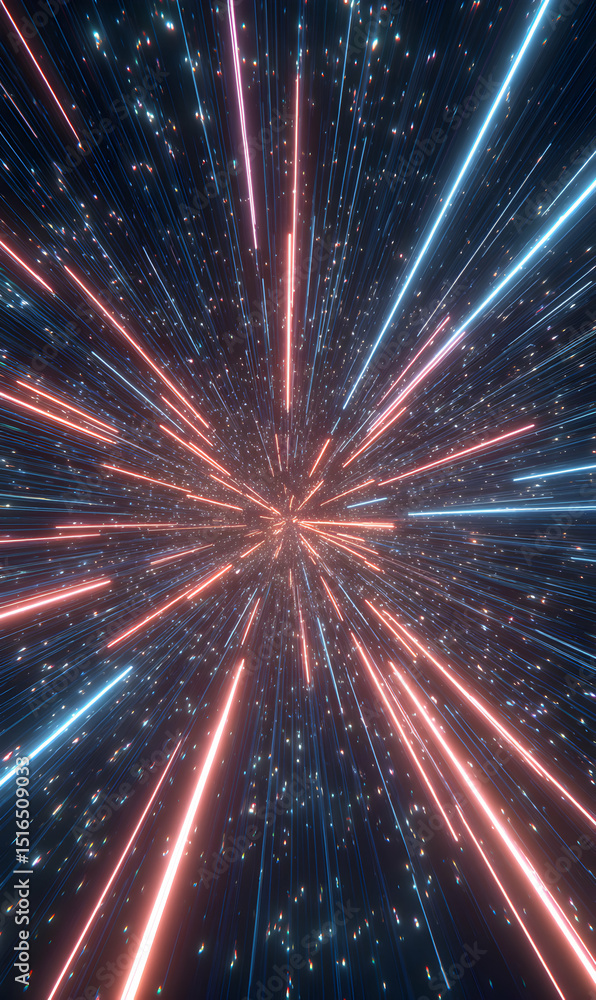 The watermark will not be included on Wall mural.: Accelerated light streaks through a cosmic tunnel simulation of speed and digital warp drive effect