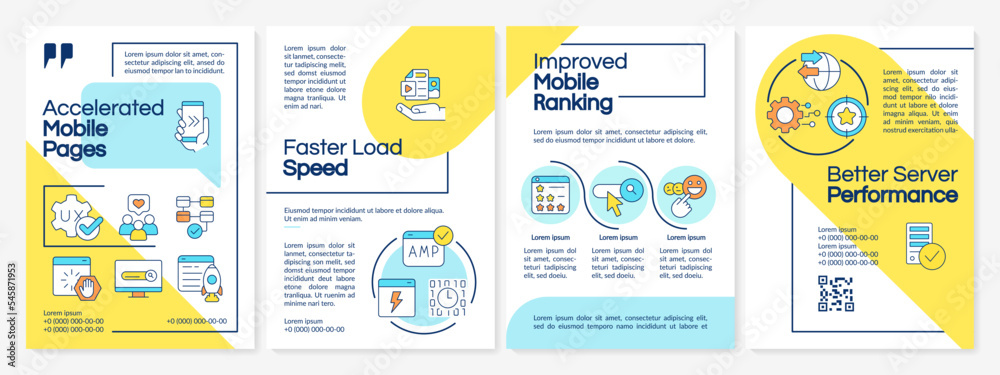 The watermark will not be included on Wall mural.: Accelerated mobile pages technology blue and yellow brochure template - leaflet design with linear ic