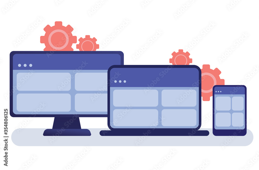 Wall mural adaptive programming icons set. multi device development, software engineering. responsive web desig - Wall murals Wall mural adaptive programming icons set. multi device development, software engineering. responsive web desig - Wall murals