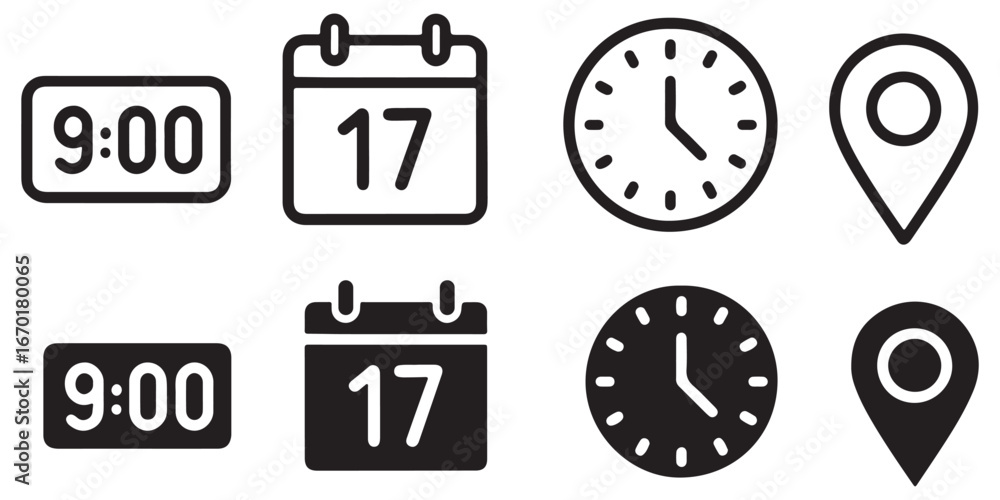 Wall mural address time date icons set. address location icon. clock icon. calendar icon. time, date and addres - Wall murals Wall mural address time date icons set. address location icon. clock icon. calendar icon. time, date and addres - Wall murals