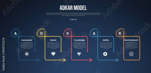 The watermark will not be included on Wall mural.: Adkar model infographic template with creative line table with arrow on edge dark background style w