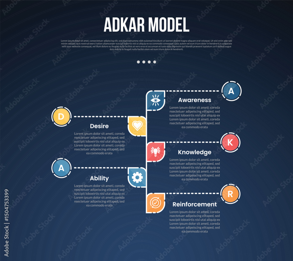 Wall mural adkar model infographic template with vertical timeline and circle dotted line dark background style - Wall murals Wall mural adkar model infographic template with vertical timeline and circle dotted line dark background style - Wall murals