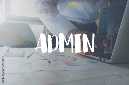 The watermark will not be included on Wall mural.: Admin message on the working in the office on table background -